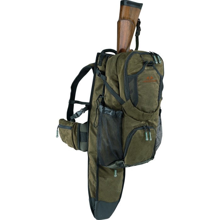 Har flera förvaringsfickor, så som en specialdesignad vapenförvaring samt nätfickor för småsaker.