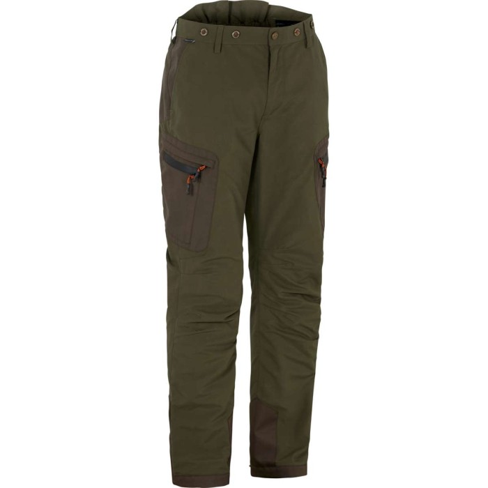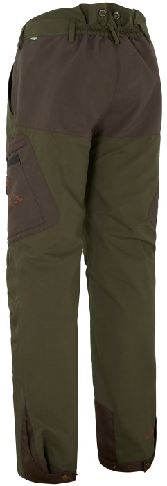 Swedteam Ultra Pro jaktbyxor är slitstraka och byggda för att ge skydd och komfort under tuffa förhållanden. Med dubbelt tyg baktill får du extra hållbarhet där det behövs som mest. COVERTEX® 100 Liner-membranet gör byxorna både vatten- och vindtäta, vilket säkerställer att du håller dig torr och bekväm oavsett väder. Har en Pro fit passform. Den höga midjan bak med bred resår ger en stabil och skön passform, medan insidan av midjan är utrustad med non-slip silikon för att hålla byxorna på plats. Knappar för hängslen gör det enkelt att anpassa efter behov. Förvaring är genomtänkt med två rymliga framfickor med varmt foder samt två benfickor med extra utrymme för telefon eller GPS. Justerbara benslut med tryckknappar säkerställer en flexibel passform och bättre skydd mot väder och vind.