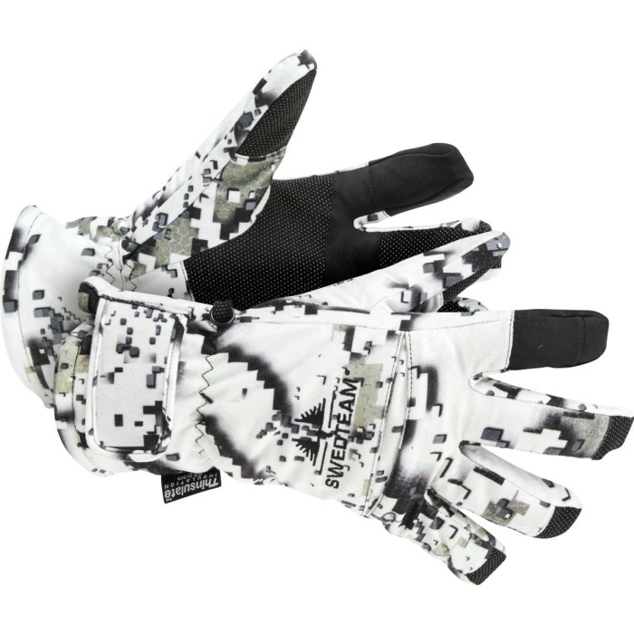 Kamouflagehandske för jakt vid kall väderlek. Handsken är vind- och vattentät och är utrustad med skjutfinger i elastiskt material.