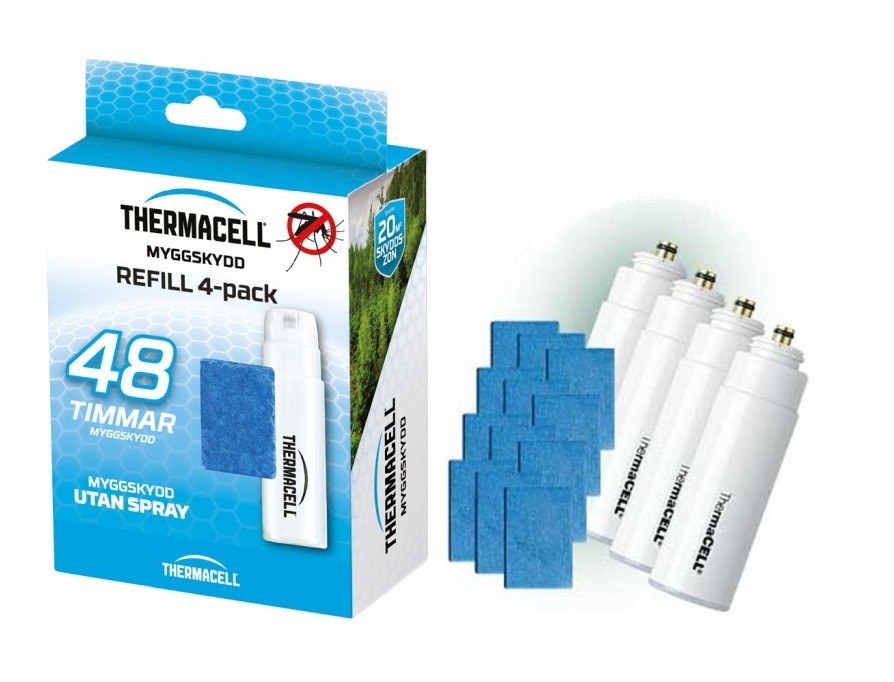 Refill att använda till Thermacell mygg- och knottskydd. Refill 4-pack motsvarar 48 timmars effektiv användning.