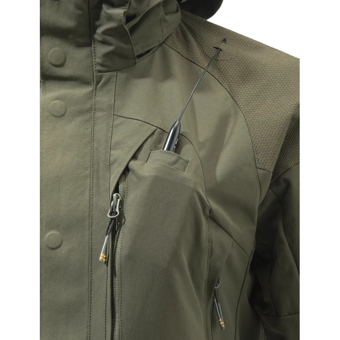 Beretta Thorn resistant jaktjacka är robust och tålig, utvecklad för aktiv jakt i krävande miljöer med taggbuskar och tät vegetation. Det vattentäta och ventilerande Beretta Waterproof Breathable (BWB) EVO-membranet med elastisk fodring skyddar mot väta och ger god rörelsefrihet. Yttermaterialet i slitstark polyamid med Durable Water Repellent (DWR)-behandling står emot fukt och smuts, medan extra nötningsskydd på utsatta områden ökar jackans hållbarhet.