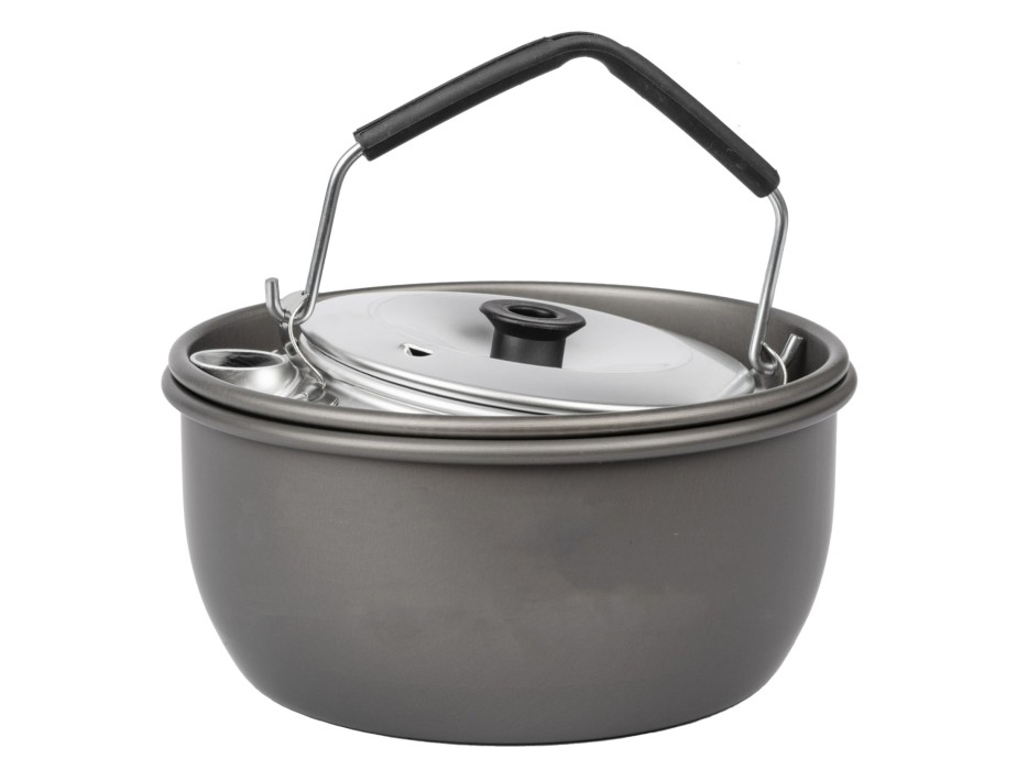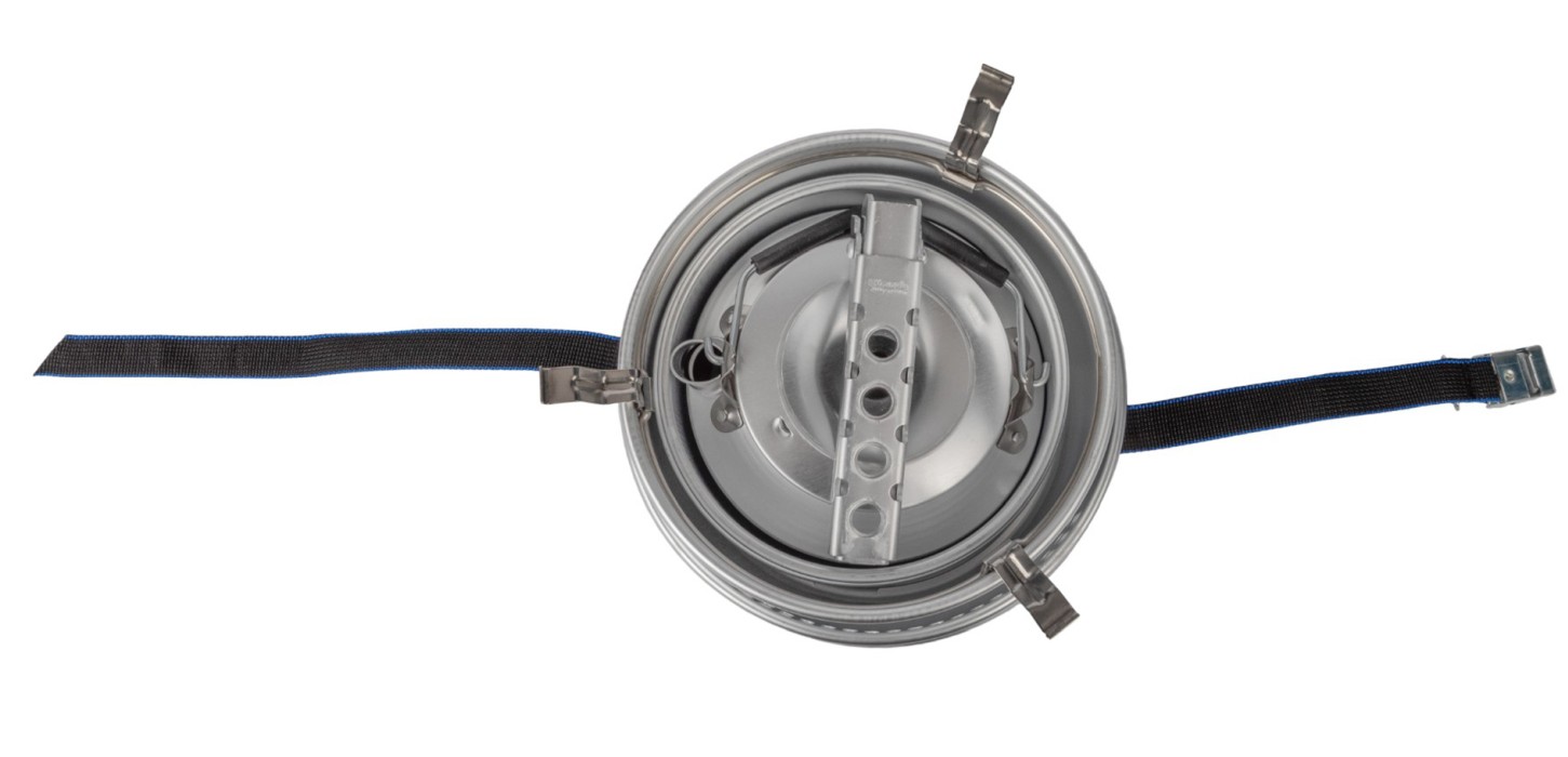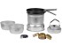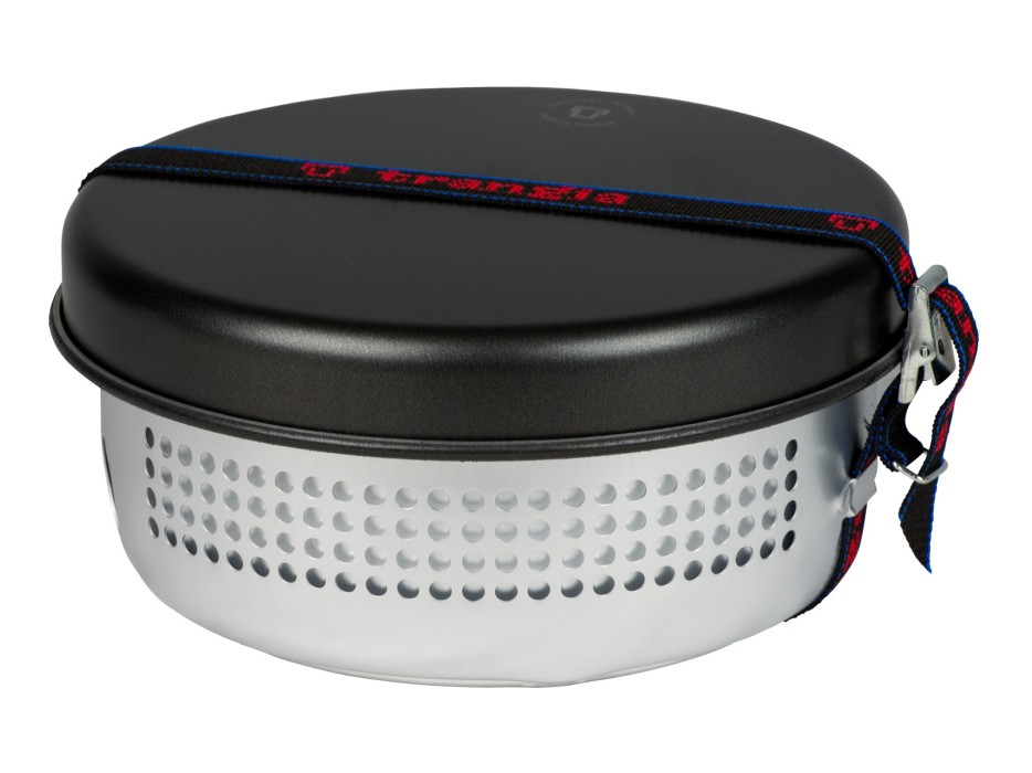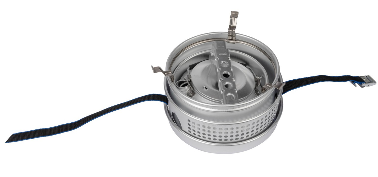 Kokkärlen är mindre och kaffepannan är dimensionerad därefter. Fördelarna med detta stormkök är att du får ett litet, lätt, kompakt kök som kräver minimalt utrymme i ryggsäcken. Även här går det att komplettera med större lägerkittlar som kan ställas på de uppfällda hållarna i det övre vindskyddet.