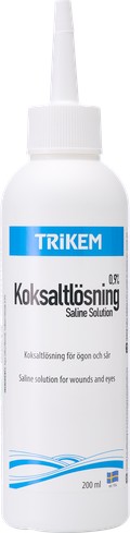 Koksaltlösning för rengöring av ögon, sår och hudskador.