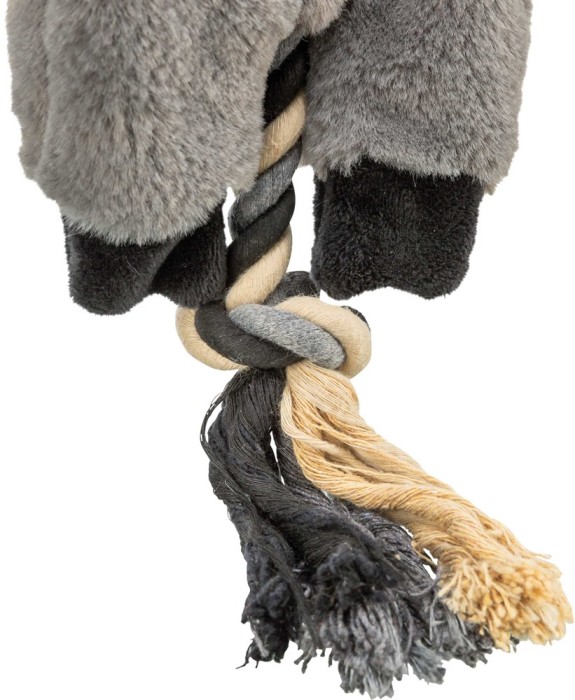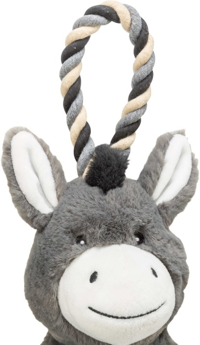 Den här charmiga åsneleksaken från Trixie är både rolig att leka med och snäll mot miljön. Tillverkad i återvunnen plysch och slitstarkt rep av polyester och bomull blir den snabbt en favorit hos hundar som gillar att bära, kampa eller gosa. Med sina hela 66 cm är den perfekt för lite större hundar, eller de som bara gillar stora leksaker!
