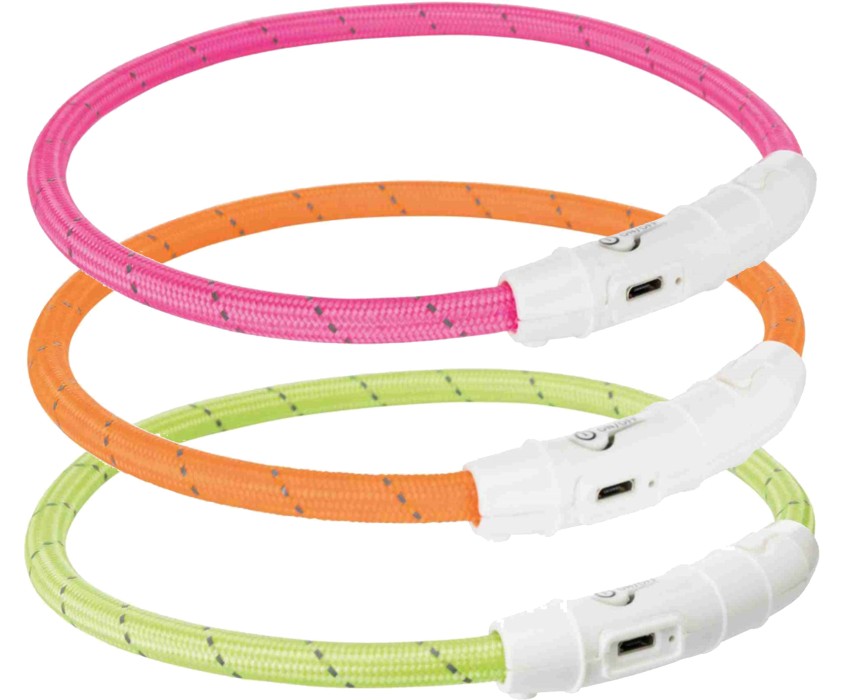 Trixie Flash Light Ring är ett perfekt tillbehör under det mörkare halvåret. Med hjälp av halsbandet syns din hund tydligare för både mötande människor och bilister.