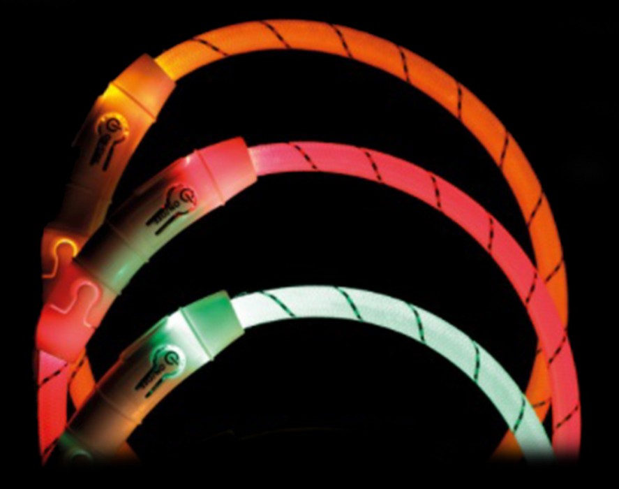 Ett snyggt och bekvämt blinkhalsband som enkelt laddas med USB-sladd.