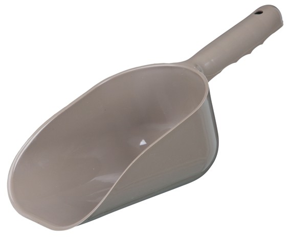 Praktisk foderskopa i plast som gör doseringen enklare.