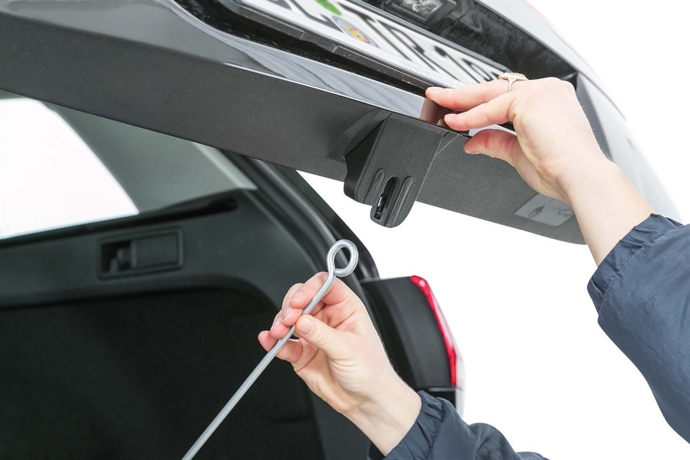 Fästs smidigt och säkert i bakluckan på din bil. Inga verktyg behövs, bara haka fast och njut av fördelarna. Tillverkad av robust, galvaniserad metall som är designad för att tåla väder och vind.