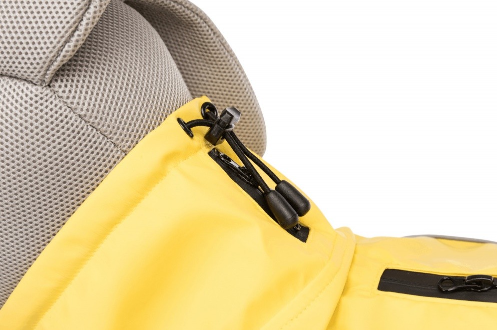 Täcket har vattentäta dragkedjor vid nacken som gör det möjligt för dig att fästa kopplet i halsbandet eller selen under täcket.