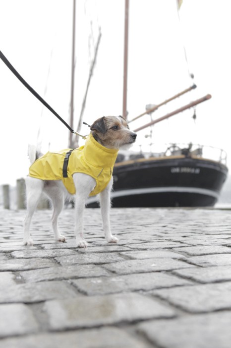 Täcket har vattentäta dragkedjor vid nacken som gör det möjligt för dig att fästa kopplet i halsbandet eller selen under täcket.