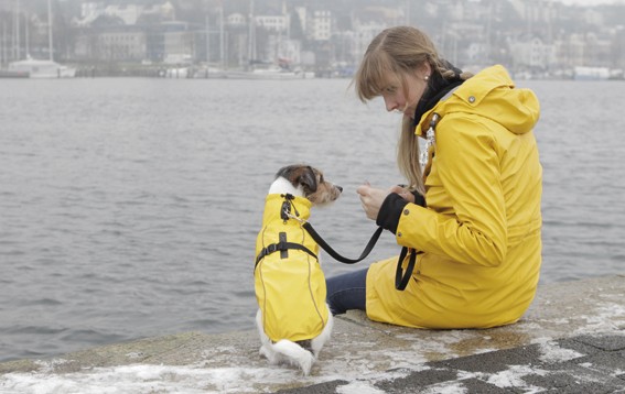 Runt magen finns en rem som är fullt justerbar. Täcket är både vind och vattentåligt med insydda reflexer för att både du och din hund ska synas.