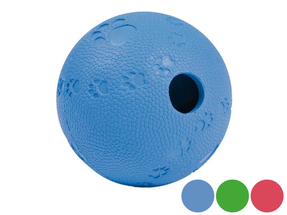 En mjuk snacksboll tillverkad av naturgummi som du kan fylla med godbitar eller foderkulor. Hunden måste rulla bollen med tass eller nos för att få ut det goda innehållet.