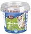 Trixie Snack Mini Hearts levereras i en smidig plastburk som gör att godisarna håller sig mjuka och fräscha längre.