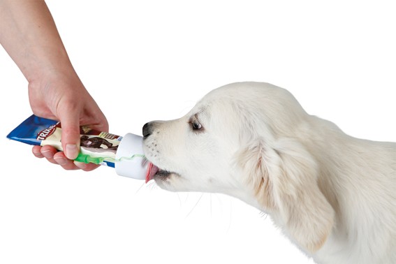 Enkel och smidig att använda och förhindrar att hunden tuggar på godistuben.