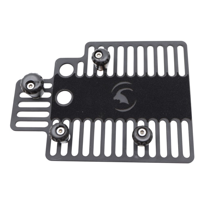 Plattorna har gängade hål som man sätter adaptern på. Man fäster sedan mobilen och passar in den med låspinnarna.