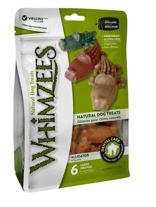 Whimzees Alligator har ett högt fiberinnehåll, är fettsnåla och väldigt lättsmälta.