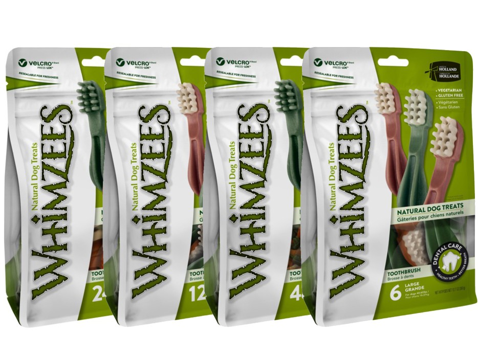 Whimzees Tandborste har ett högt fiberinnehåll, är fettsnåla och väldigt lättsmälta.